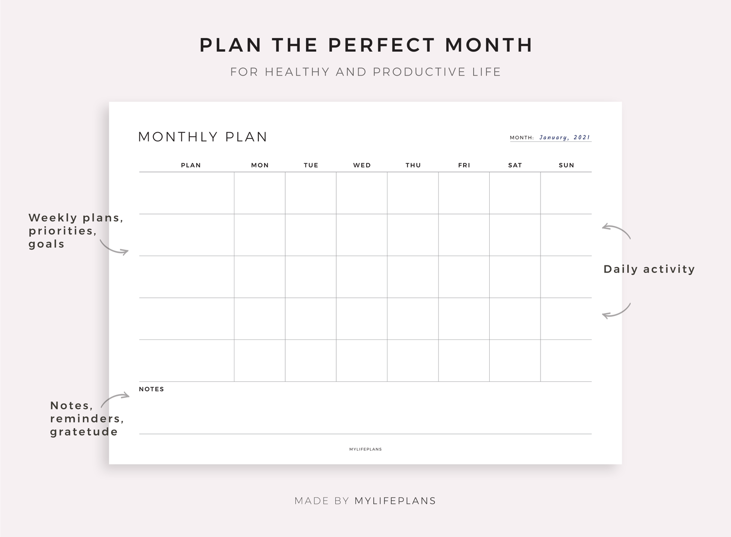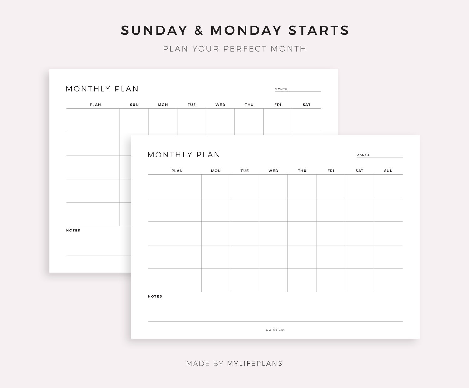 Blank Monthly Planner Digital, Landscape, Compatible with Goodnotes, Notability, Ipad