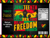 The Juneteenth editable party favor design and mockup for items such as water bottles, chips, Rice Krispies, Capri Sun, candy bars, Pringles, and boxes is a vibrant and culturally rich template set, perfect for celebrating the significance of Juneteenth. Each design features a bold and meaningful color palette of red, black, green, and yellow, reflecting the colors of the Pan-African flag. The water bottle labels, chip bags, Rice Krispies wrappers, Capri Sun pouches, candy bar covers, Pringles wraps, and favor boxes are adorned with symbolic graphics such as freedom fists, traditional African patterns, and celebratory elements like stars and confetti. Customizable text areas allow for personalized messages, names, and event details, ensuring each favor is unique and tailored to the event.