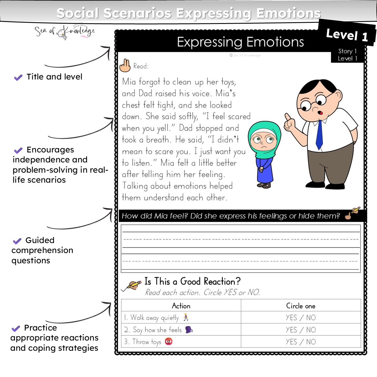 ✔ Level 1 Stories – Longer comprehension-based SEL texts for discussion and reflection