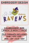 Christmas Grinch Face x Baltimore Ravens NFL Team Embroidery Designs, Grinch Embroidery Files, NFL Ravens Football Team Logo Embroidery, Merry Christmas Machine Embroidery Design, Digital Download