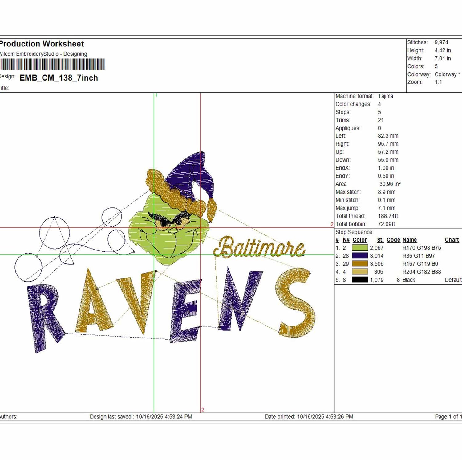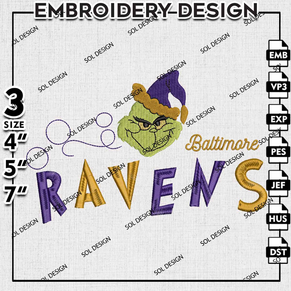 #ChristmasGrinch #BaltimoreRavens #NFLEmbroidery #GrinchEmbroidery #RavensLogo #MerryChristmasDesign #MachineEmbroidery #DigitalDownload #EmbroideryFiles #FootballEmbroidery