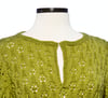 This is a lovely lace pattern; leave it unblocked for high texture, or block it out to see more of the openwork. Just be sure your gauge, whether blocked or unblocked, matches what the pattern calls for. The tunic is worked mostly in the round; you only have to sew in the sleeves. The side slits allow the tunic to fit nicely over your hips without clinging.