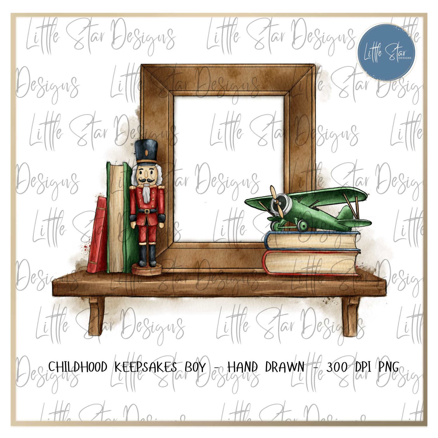 This is a high-quality hand drawn (300dpi PNG) digital download of my original artwork, titled 'Childhood Keepsakes Boy', designed for sublimation and print.