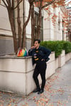 The Rainbow Handbag is made of genuine calf leather and has two inside pockets and one zipper pocket with lots of space, a magnetic flap, hardware feet, an adjustable strap and comes in a dust proof bag. Embossed on both sides of the leather is Romans 8:37, Charnika's signature scripture, "Yet in all these things we are more than conquerors through Him who loved us." This bag has become very popular and can be used throughout the year. It can be carried with jeans and tennis shoes, slacks and boots, a dress and heels.
