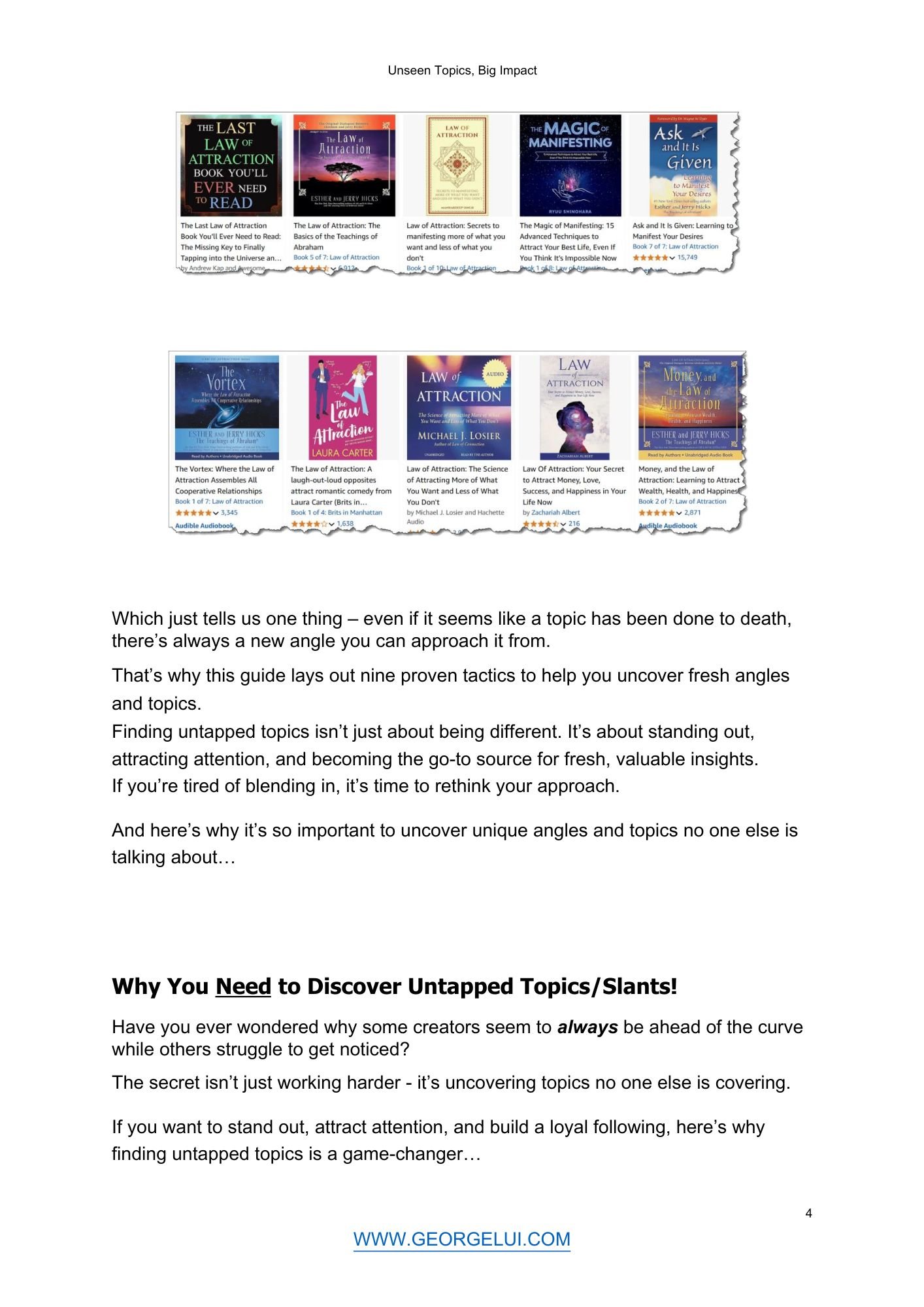 The difference between being ignored and becoming an authority isn't working harder—it's finding topics no one else covers.