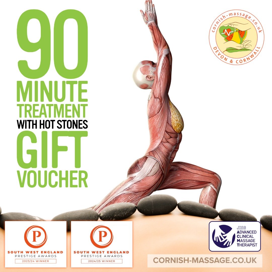 Gift Voucher for a 90 Minute HOT STONES clinical massage for chronic or acute conditions.