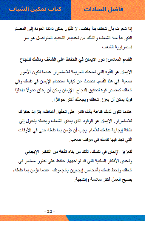 في عالم مليء بالتحديات والفرص، يأتي كتاب "تمكين الشباب" ليكون مرشدًا حقيقيًا لكل شاب يسعى لتحقيق النجاح وتحويل أحلامه إلى واقع.