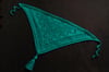 When meeting gauge and working all rows in the pattern, the triangle measures 60 cm across the top and 28 cm in depth, due to the slight elasticity of the lace pattern.