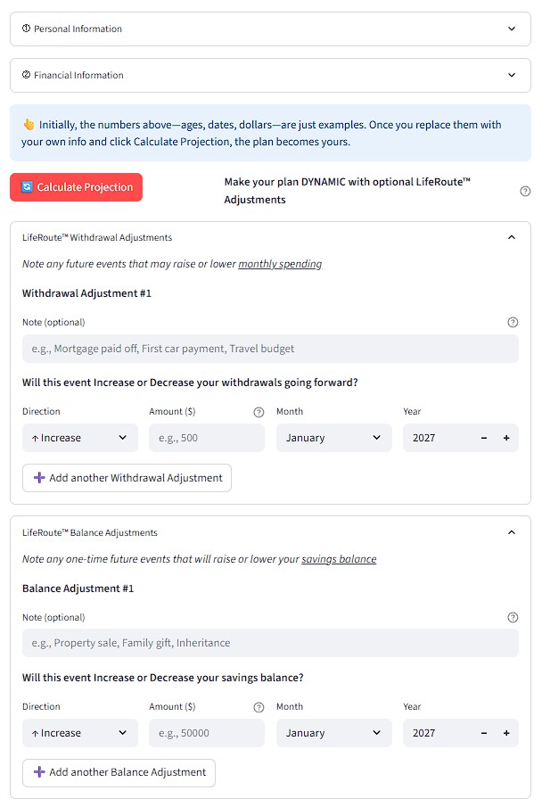 Most retirement calculators give you a flat, static projection - as if your life will never change. But life isn’t static. Future events like mortgage payoffs, downsizing your home, or that bucket-list trip… they all change your path.