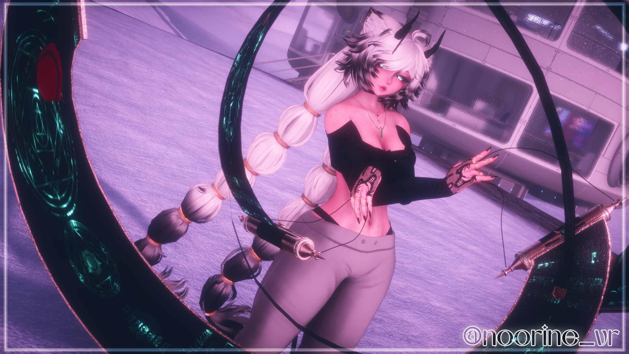 Body :: Zinpia - Vrbase Egirl | Head :: Starlynn - Starlight Anime Head | Hairs :: Saikura, Nessy!, MinkiVR | Nails :: Winks - Chic Nails | Lashes + Brows :: Jvliette, Sivka + Sivka | Ears :: WinksVr - Kurumi | Tails :: FormulaRats - Twin Tails | Horns :: Eggly - Millim Broken Horns | Devil Tail :: Morphide (Previously Orca) - Devil Tail |