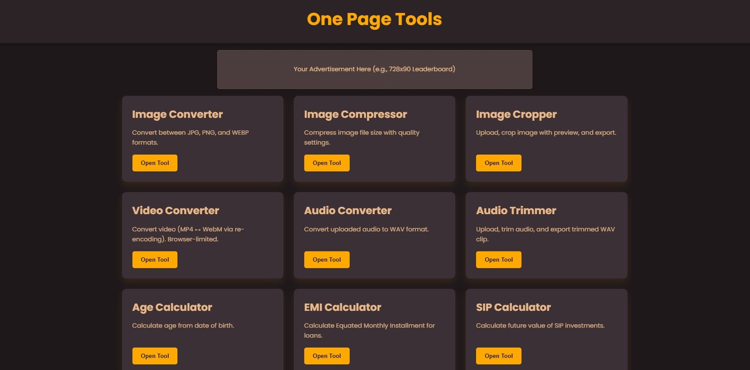 One Page Tools β Pro HTML Template (20+ Utilities)