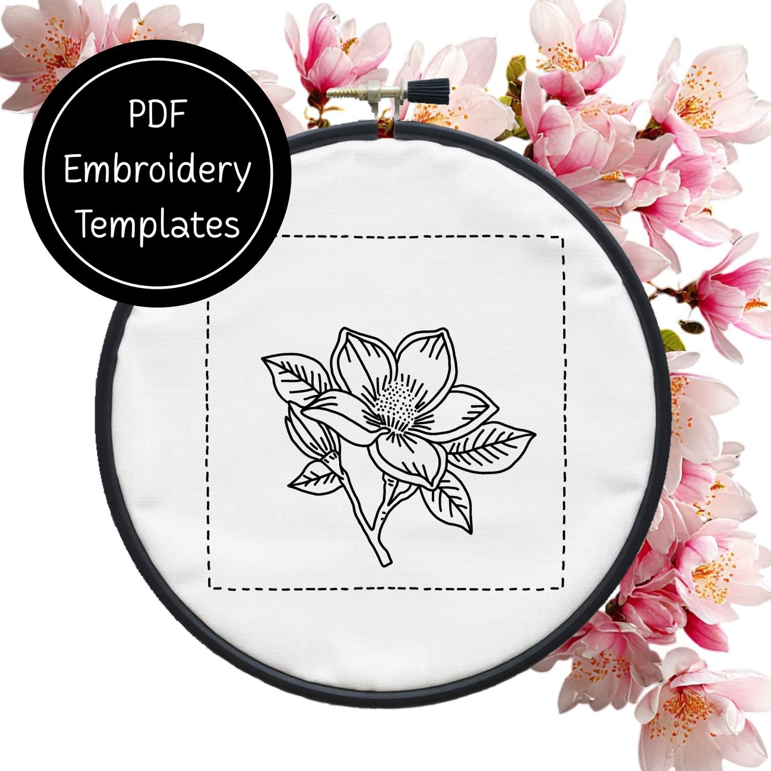 Magnolia Set - 3 Different Designs Hand Embroidery Template - Instant Download