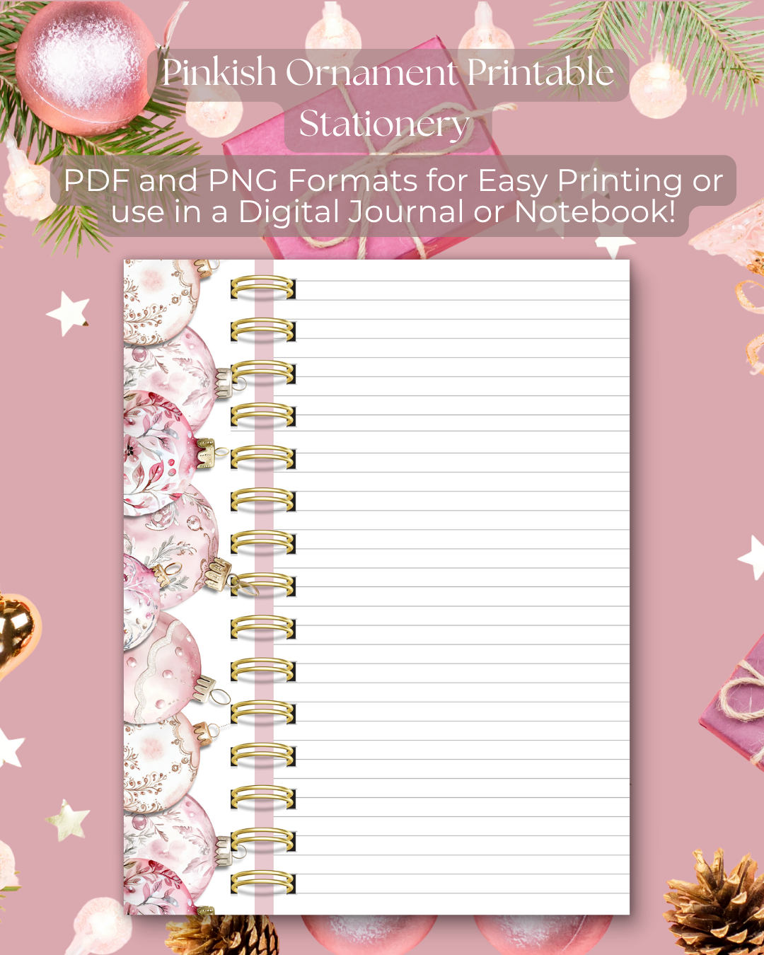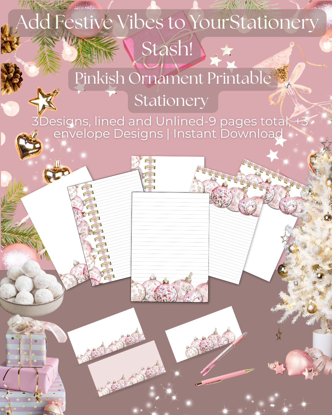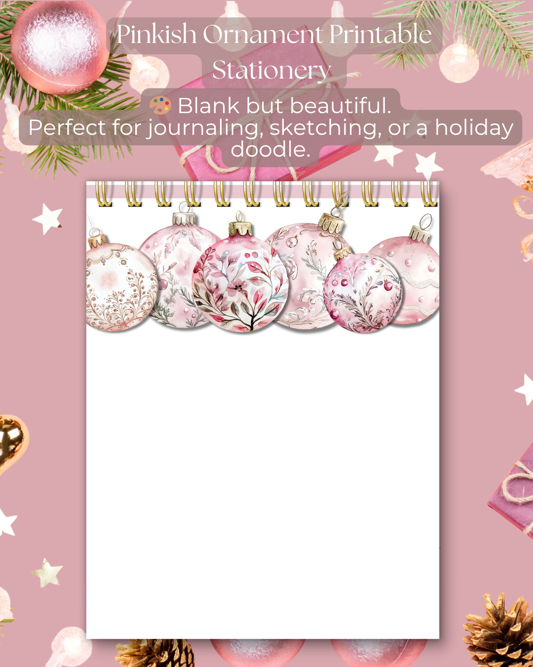 Add a touch of elegance and Christmas cheer to your writing with our Pinkish Ornament Printable Stationery Set! 🎀
