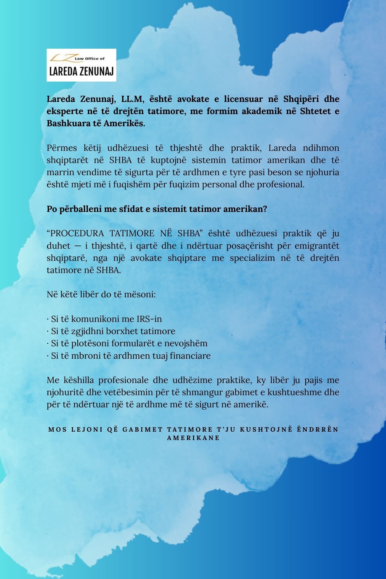 Autore: Lareda Zenunaj — Avokate shqiptare me master në të drejtën tatimore në SHBA
