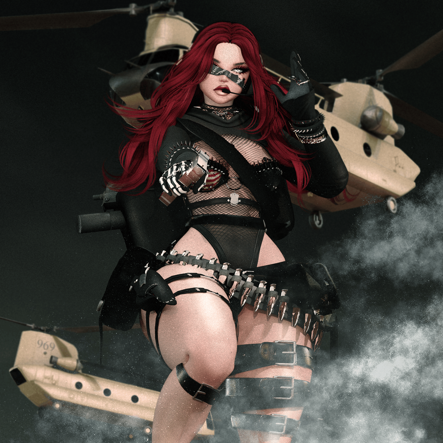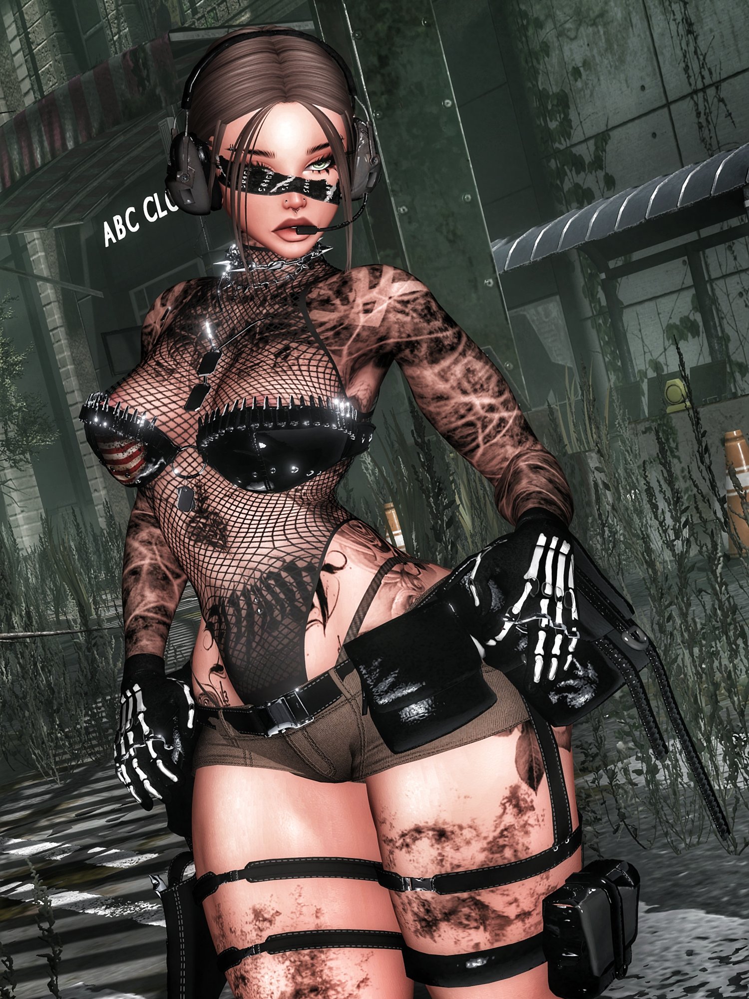 Acc : BulletBelt Cloth Harness HipPouches LegBelts LowerBodyHarness Blindfold Headphones MouthTape Dogtags NeckArmor SpikeChoker SpikeNecklaces Bracelets? BrassKnuckles Duffle Gloves CyberHarness