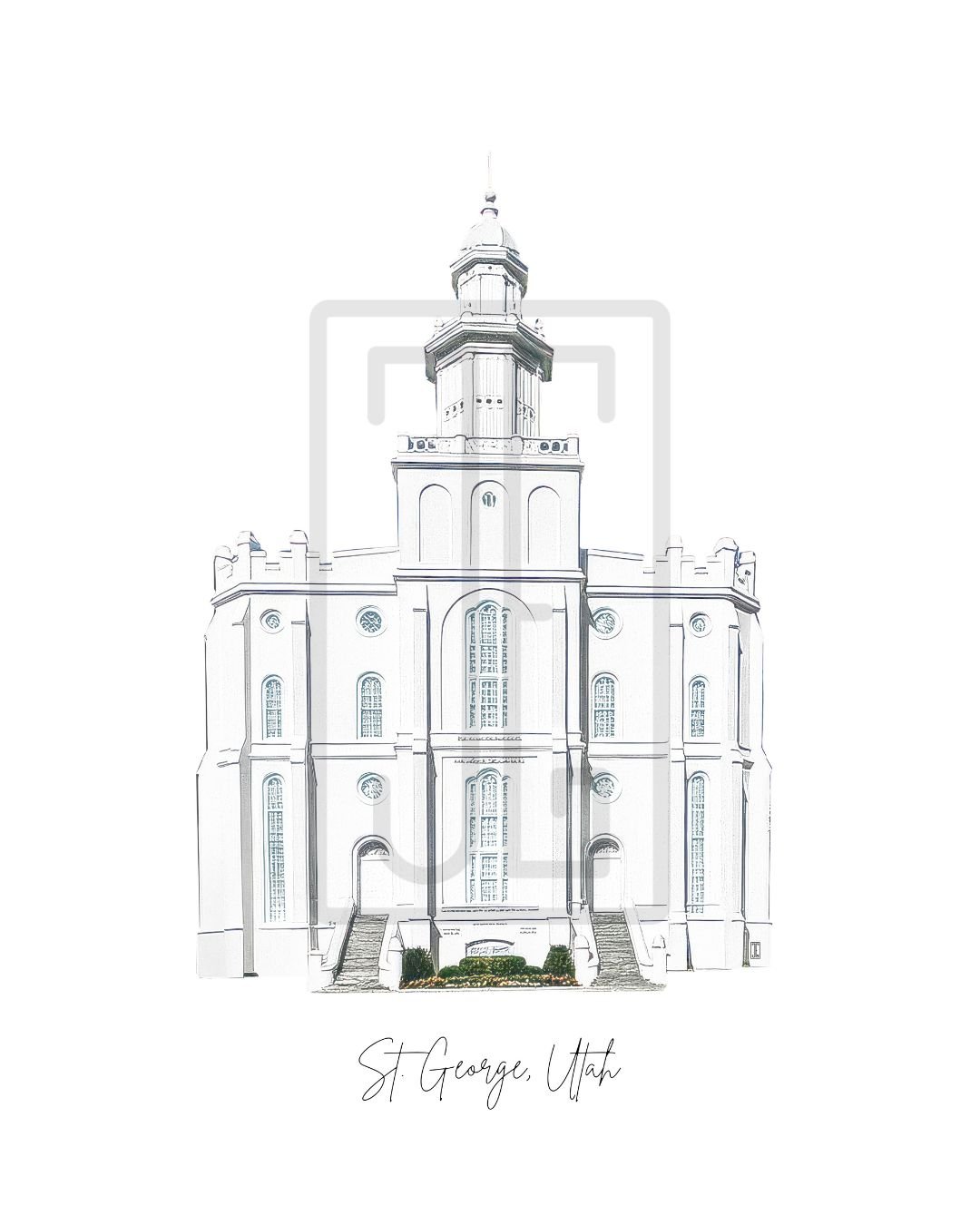 St. George, Utah LDS Temple Watercolor Print | Digital Download | Latter-Day Saint Temple | Mormon Temple Art | Temple Painting | Saint George | St George