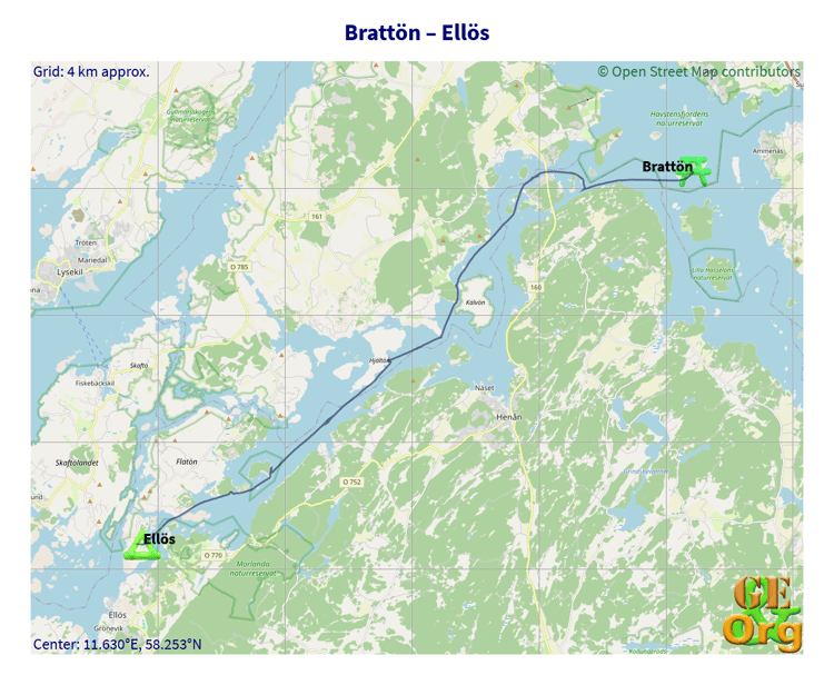 Paddling tour Kråkerön - Stenungsund, Sweden, one GPX file, one GeoJSON file, one OpenStreetMap.