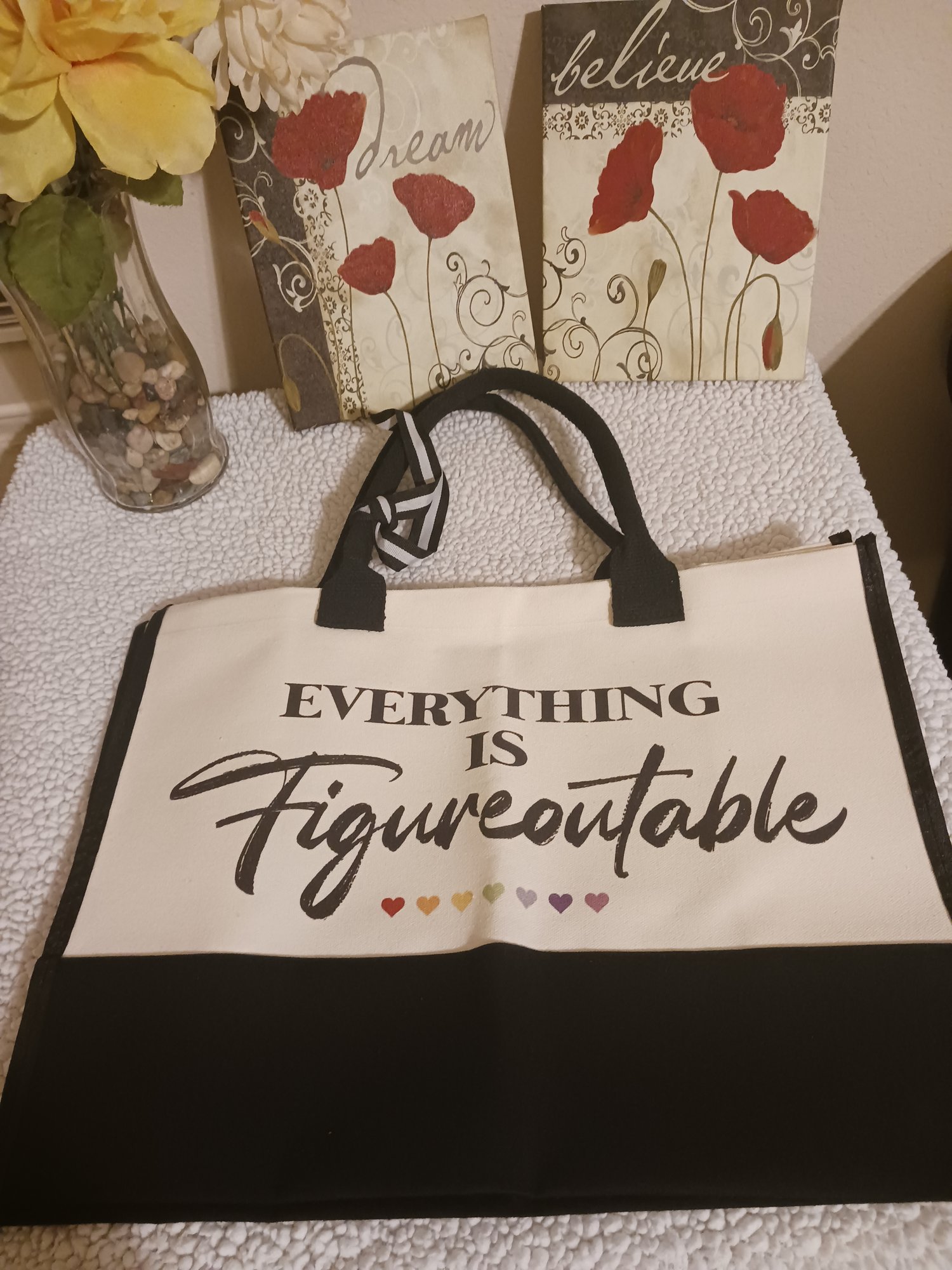 Everything is Figureoutable Canvas Tote Bag for Woman Girls, Inspirational,Encouragement Tote Bag for Her, 17 x 11.8 x 7 Inches