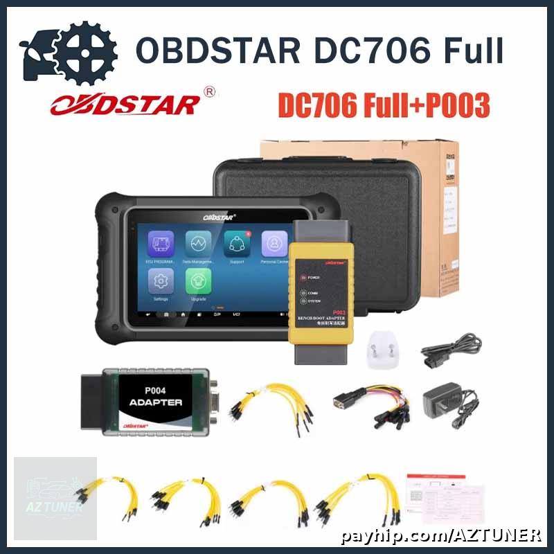 Unlock the full potential of vehicle diagnostics and tuning with the OBDSTAR DC706 Full Version ECU Tool. Designed for professional technicians and serious enthusiasts, the DC706 is a powerful, all-in-one solution for managing ECM, TCM, and Body control systems in both cars and motorcycles.Key Features & Capabilities:•Comprehensive ECU Management: Read and write essential data including Eeprom, Dflash, Pflash, and MAP files.•Advanced Cloning: Effortlessly clone ECM, TCM, and Body ECUs, ensuring seamless data transfer and replacement.•Flexible Operation: Supports both OBD (On-Board Diagnostics) and BENCH methods, giving you maximum flexibility for accessing and programming ECUs.•ECU Reset & Recovery: Perform ECU reset to a "virgin" state for replacement and utilize powerful recovery functions.•Mileage Calibration & IMMO: Includes functions for mileage calibration and reading IMMO PIN codes (where supported).•Full Kit Included: Comes with the P003+ Kit, providing all the necessary hardware for bench operations.The OBDSTAR DC706 is your essential tool for advanced ECU programming, cloning, and repair, making complex tasks simple and reliable.Your Store Link: payhip.com/AZTUNER