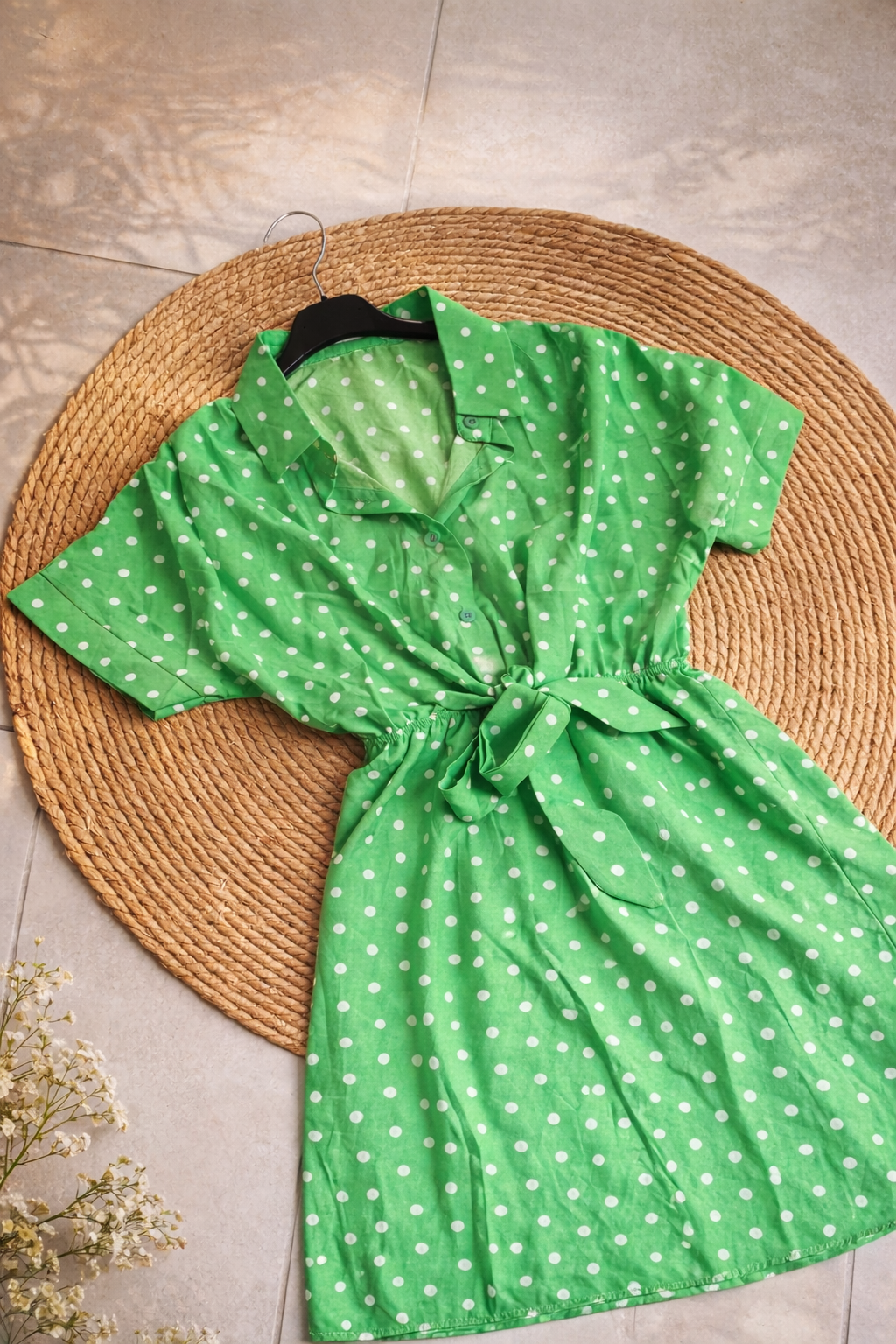 💚 Robe verte à pois – taille marquée