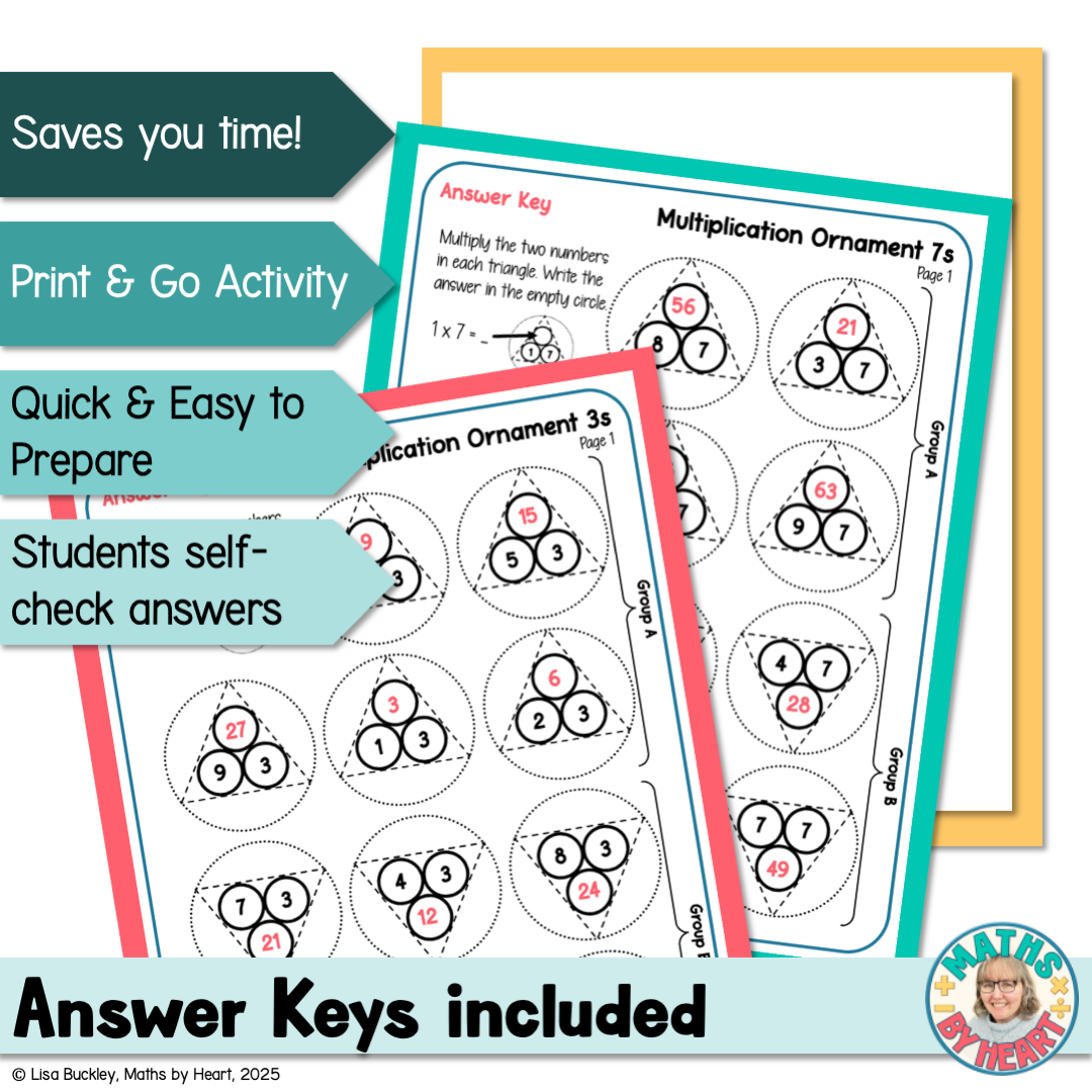 Christmas Ornament Craft Multiplication Maths Coloring Sheets
