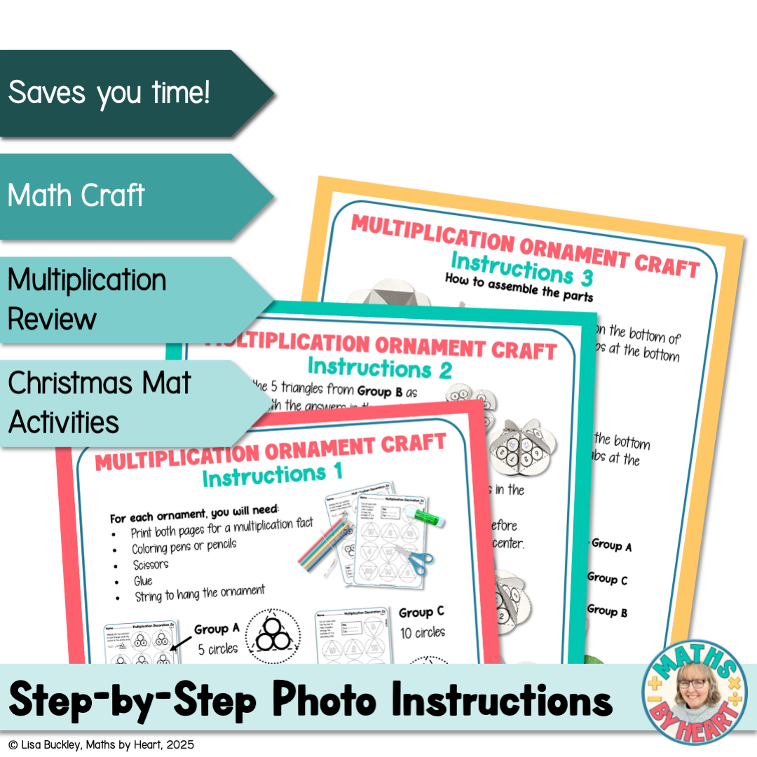 Combine maths with a 3D Christmas ornament craft to keep your students learning before the holidays! This no-prep printable resource is perfect to save time for you and makes it easy to create a colourful classroom display!