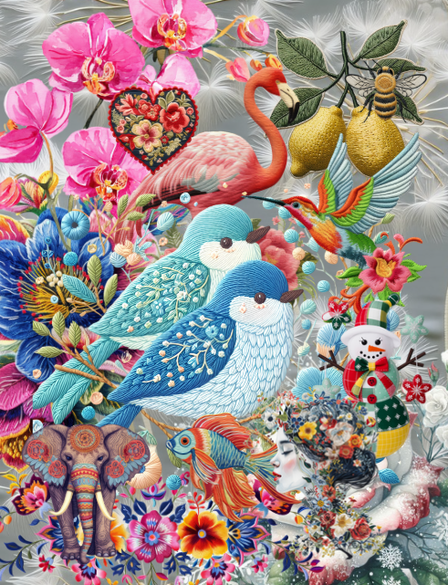 This Embroidery Ephemera to Cut and Collage Book is full of ephemera with an embroidery knit style including people, animals, and objects in colorful knits. It's so fun! Christmas elements included.