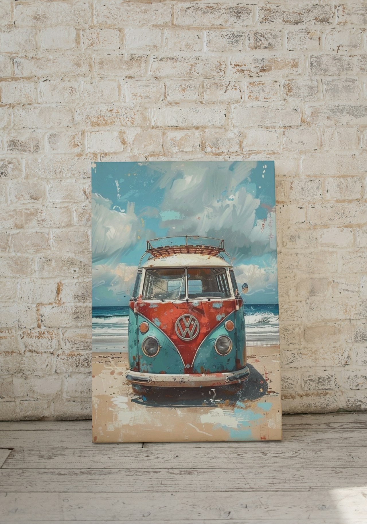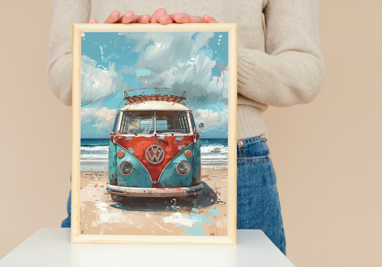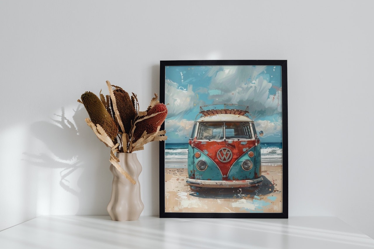 Abstract VW Camper Van Print, lovely scene WALL ART, HOME DECOR, PRINT, GIFT, NEW