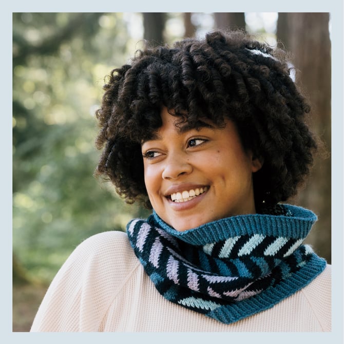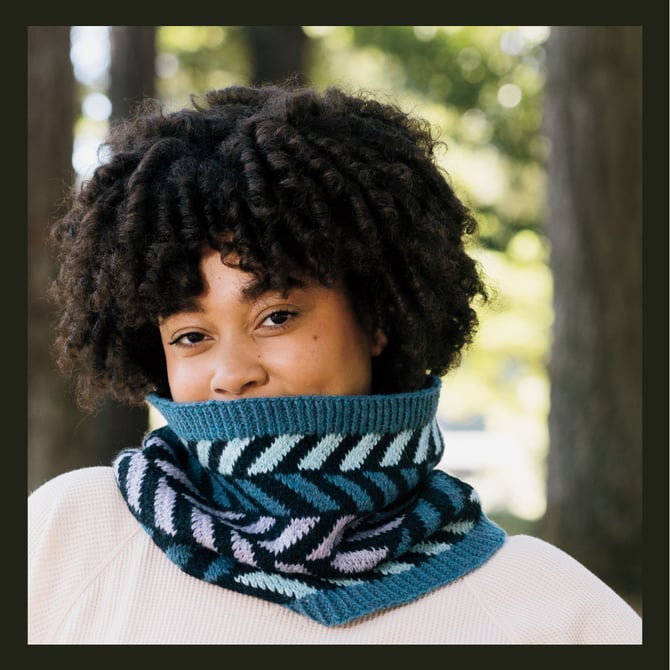 This fun stranded colorwork cowl is designed to show off changing contrast colors. A gender-neutral piece, the cowl is warm without being heavy thanks to the sport-weight or light DK-weight yarn.