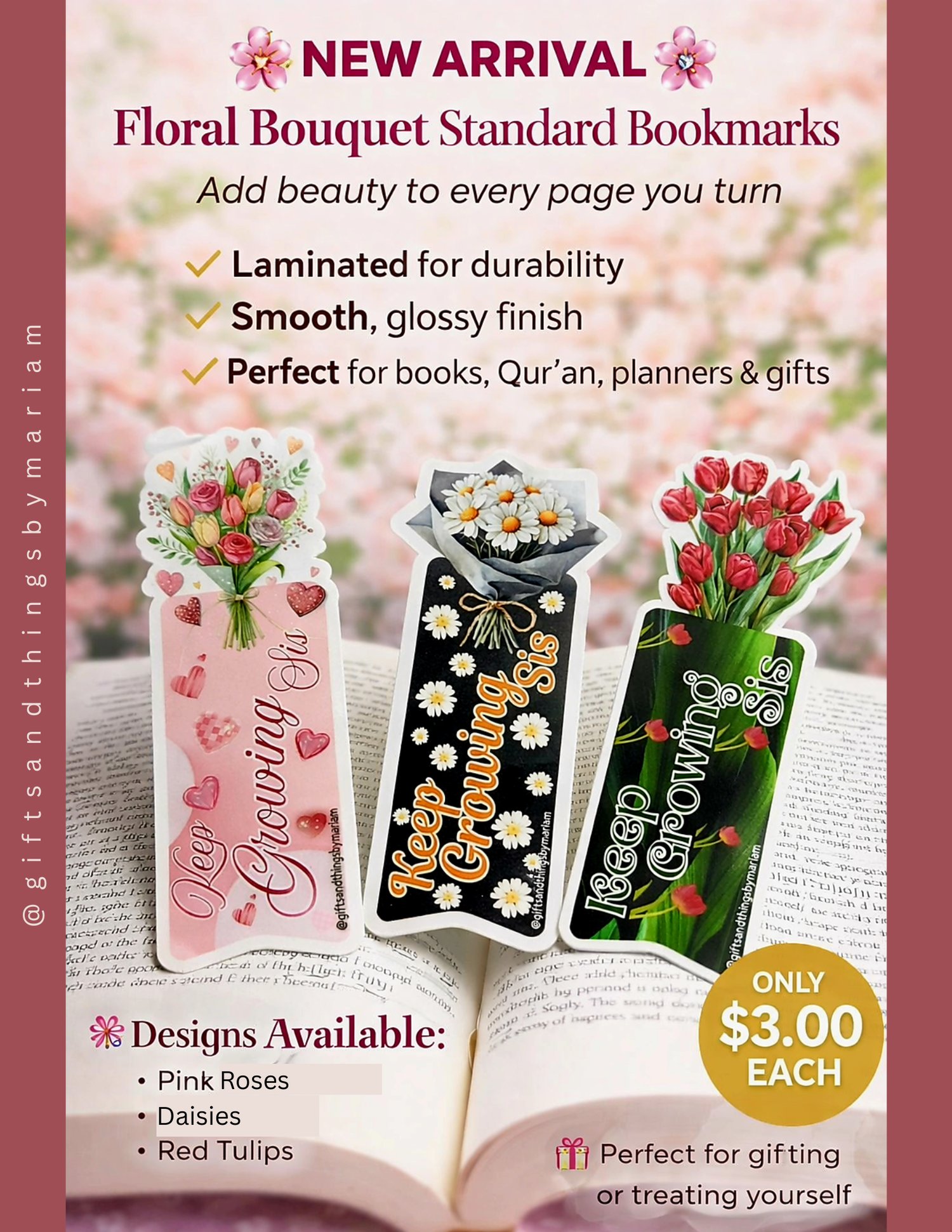 These elegant laminated floral bookmarks feature stunning bouquet designs with uplifting messages—perfect for everyday reading or gifting.