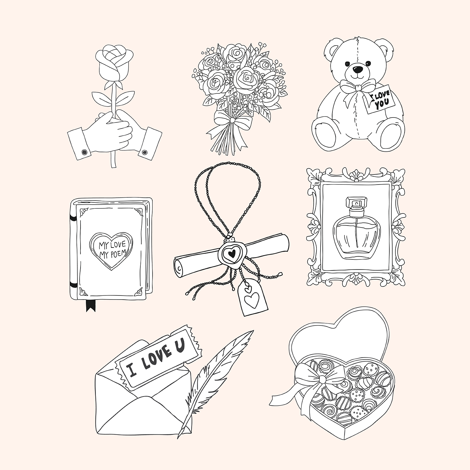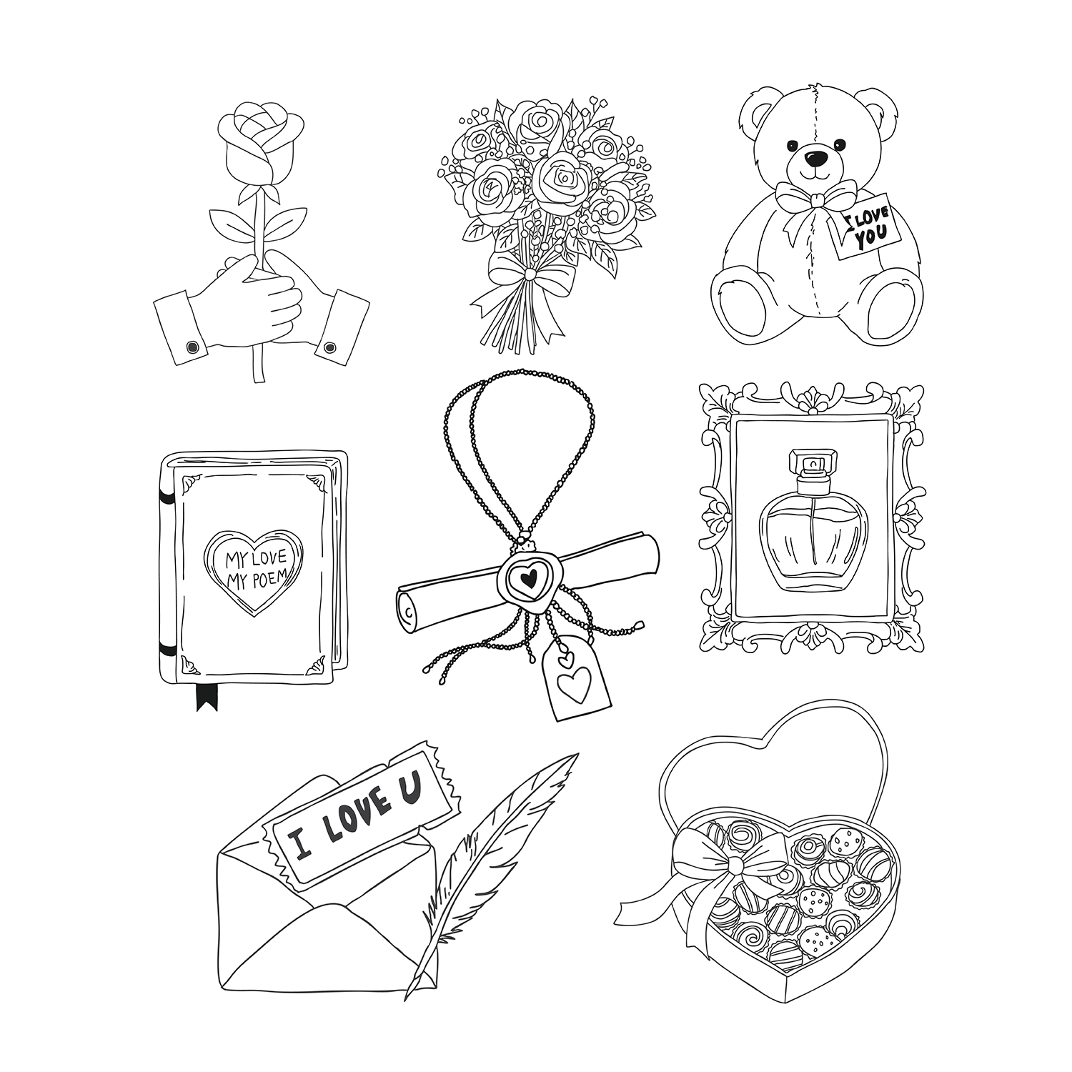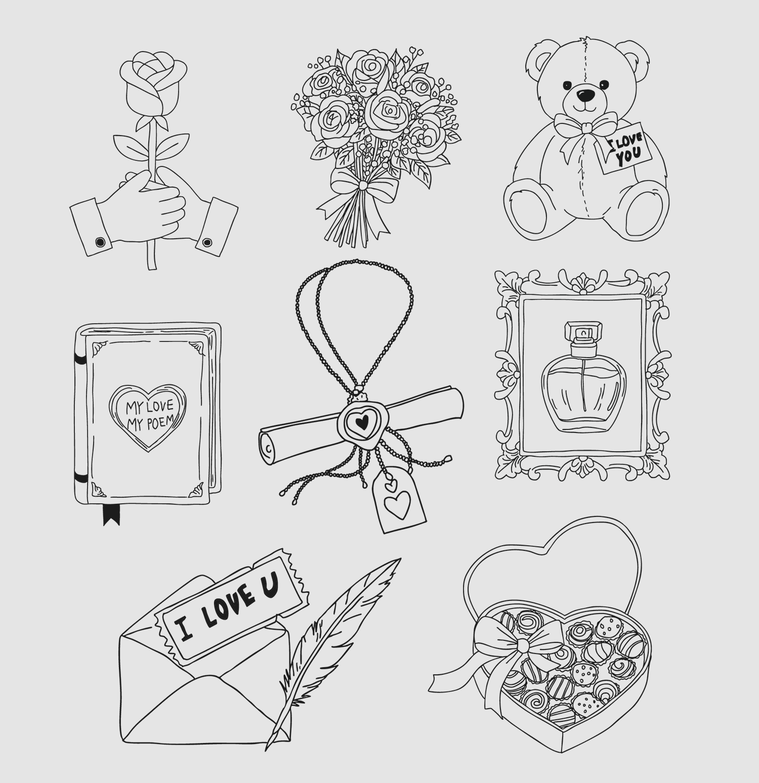 A set of 8 hand drawn love item clipart!