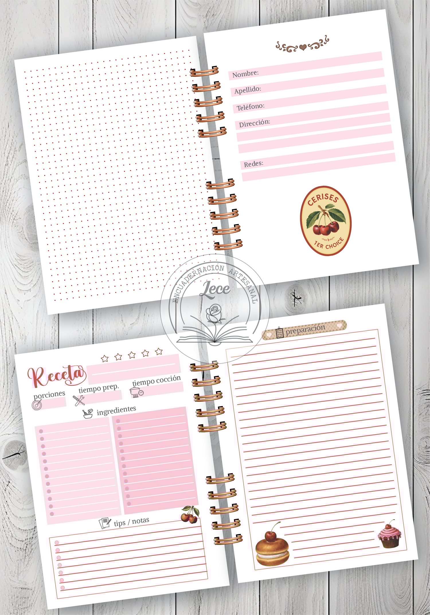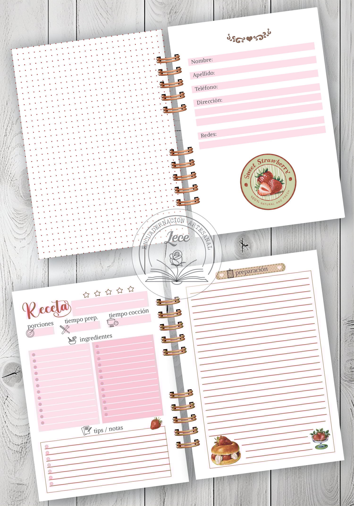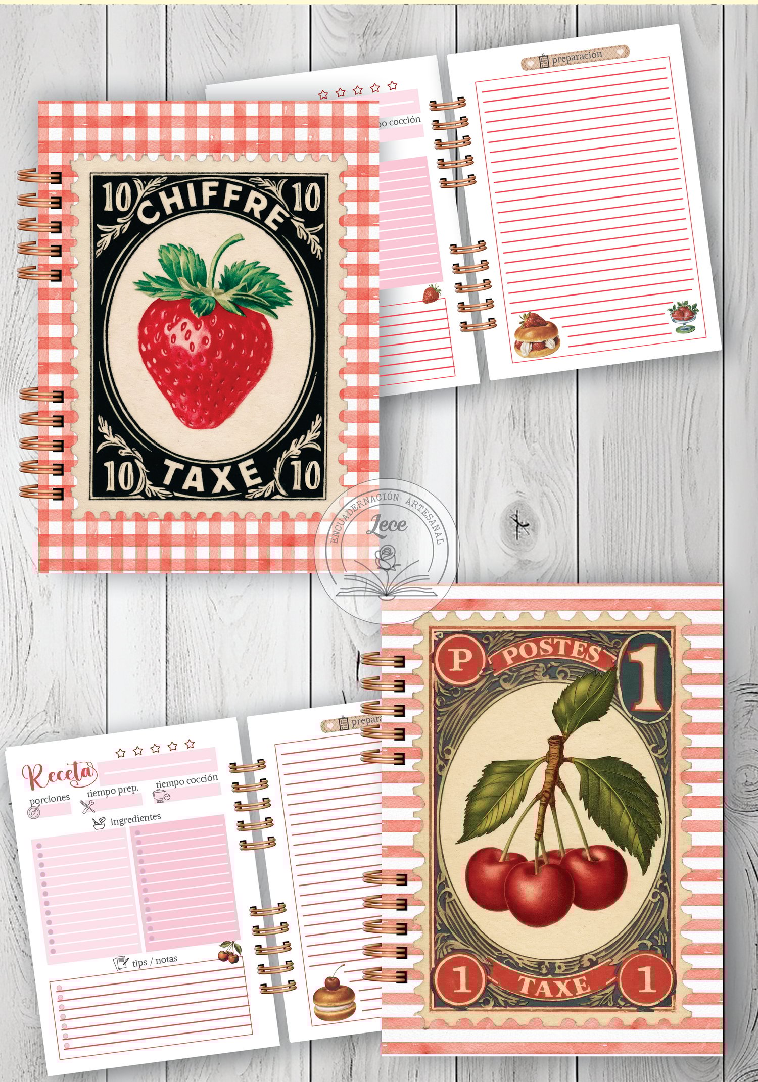 Kit imprimible Recetarios Frutillas y Cerezas