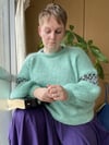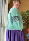 The jumper is worked in one piece from the bottom up to the underarm. If you want to add bust darts, you add them before splitting the front and back. Both are worked separately shaping the modified drop shoulder including decreases at the arm scye. After seaming the shoulder, stitches for a fold over neckband will be picked up and the edge will be bound off together with the stitches from the pick up row on the inside of the neckband. Stitches for the sleeves are picked up and the sleeve worked from the top down. The difference in circumference is created by using the different gauges for Brioche Rib and Wasp stitch. There is only shaping at the wrist to work the cuff.