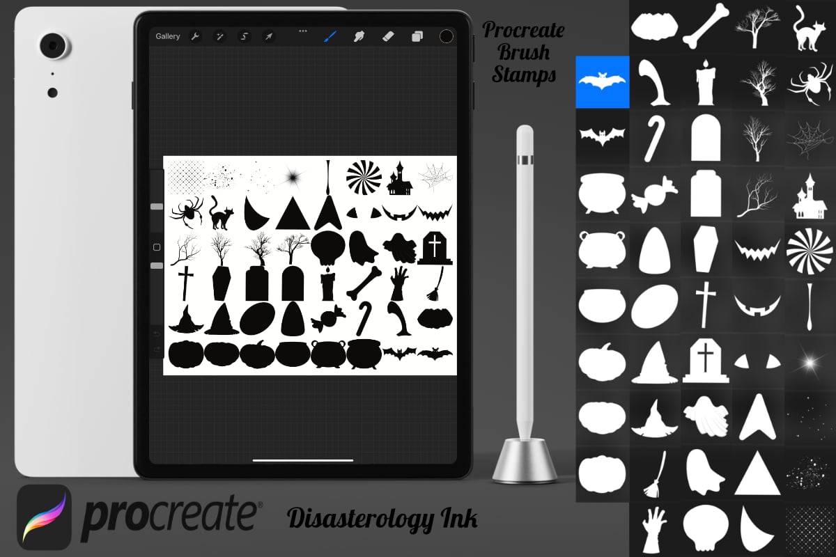 Procreate stamps save time when drawing, saving the effort of having to recreate the same thing for multiple designs and projects, save time on your design by purchasing these Halloween element brush stamps so you can utilise that time on creating more beautiful art.