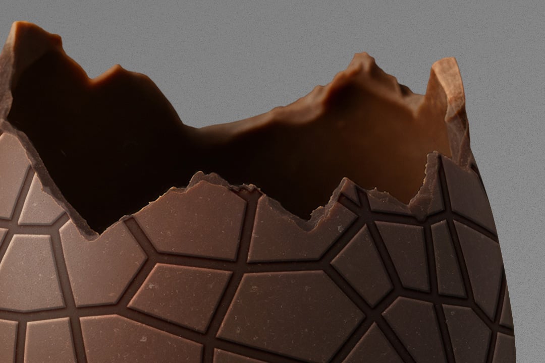 • 3 isolated chocolate egg mockups (broken, engraved, foil-wrapped)