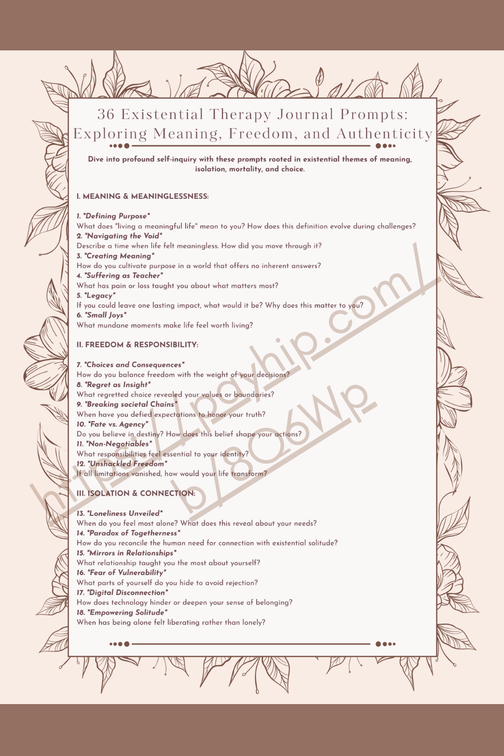 Existential Therapy Journal Prompts: Self-Inquiry, Meaning, Choice