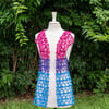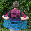The stitch pattern works well in anything from a lace to an aran weight, but I recommend sticking to lace or fingering weight so the repeats don’t end up too large. The stitch pattern shows up well with any color style from variegated to speckled to gradient. It’s specifically designed to work with flag colors, but can also be worked in one color throughout or a fade-style color progression. The laciness of the pattern means it doesn’t use very much yardage, so it’s great for using up partial skeins.Yardage per size given for crop version. The hip length top takes approximately 1.8 times, and the duster takes approximately 2.6 times, the listed yardage.