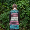 The pattern is designed to be an excellent first garment project - it’s shapeless and forgiving and a basic rectangle that takes no special skills. The pattern uses dc, sc, ch sts. Counting rows and stitches, Working into the ch-space, Working flat, Mattress stitch, Working to stitch markersConstruction