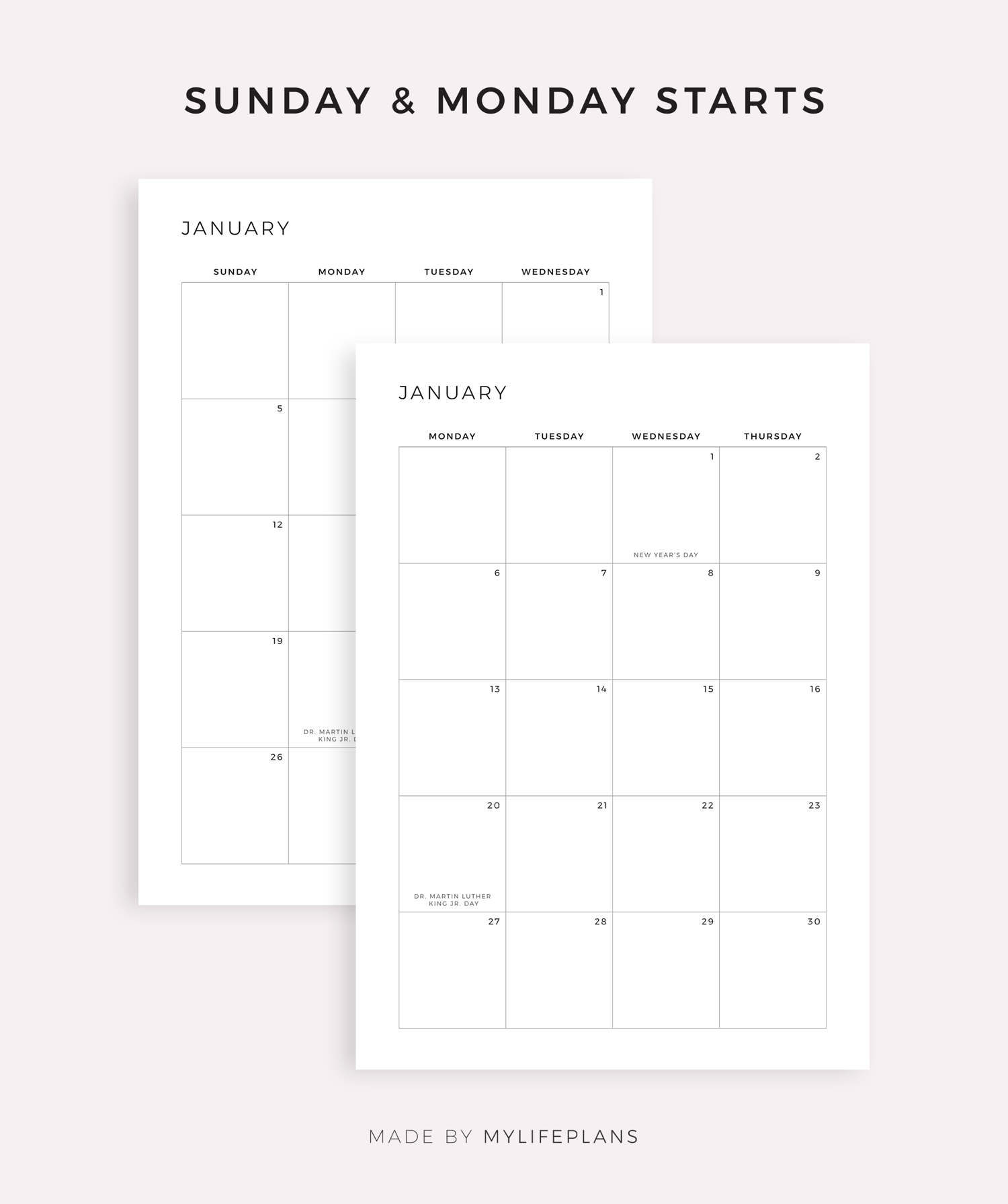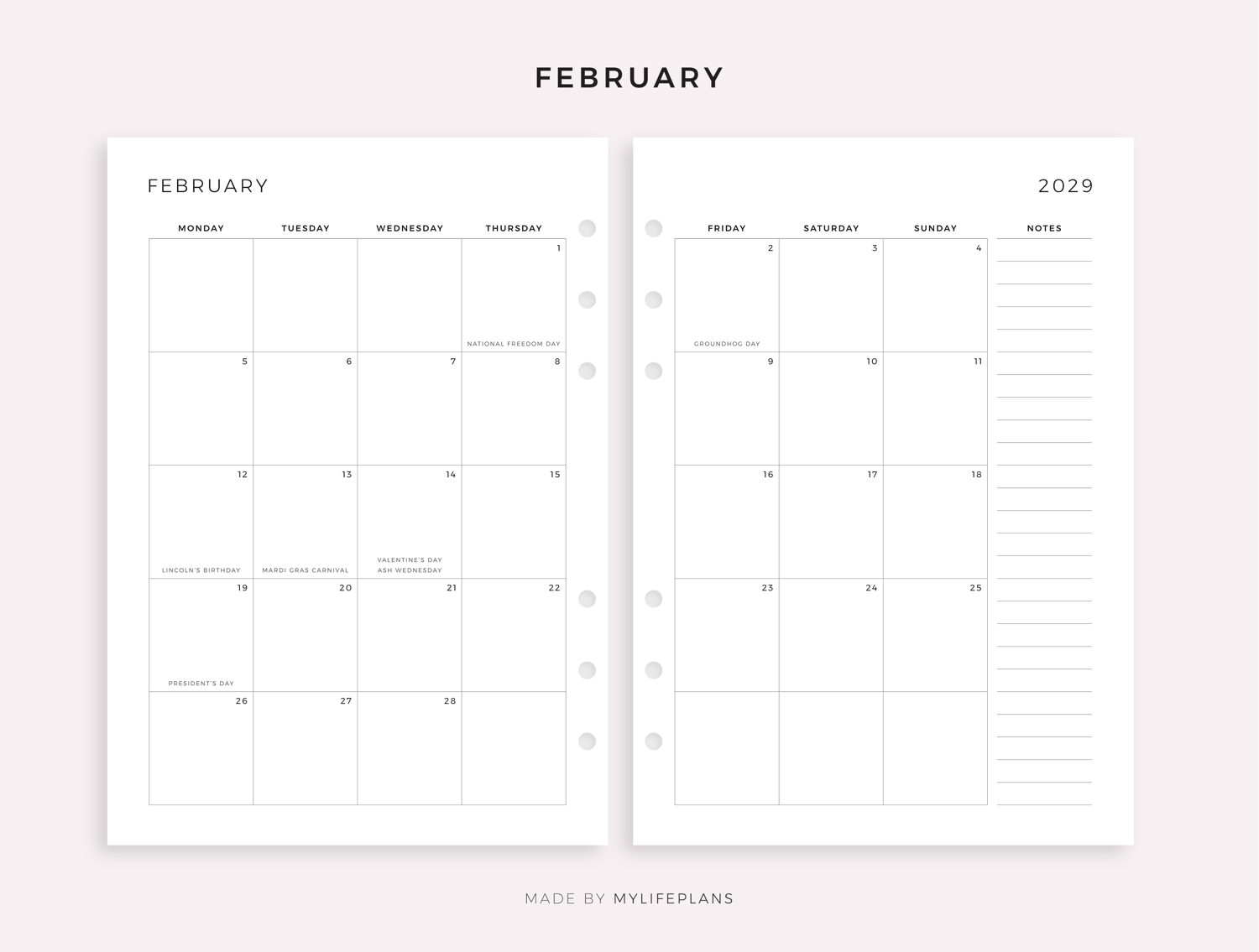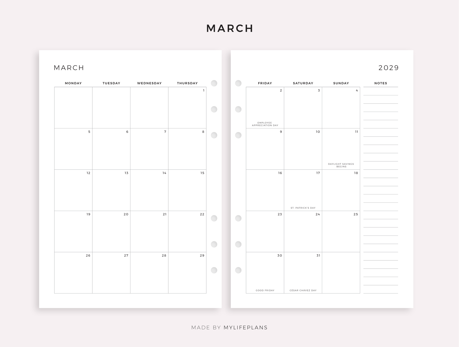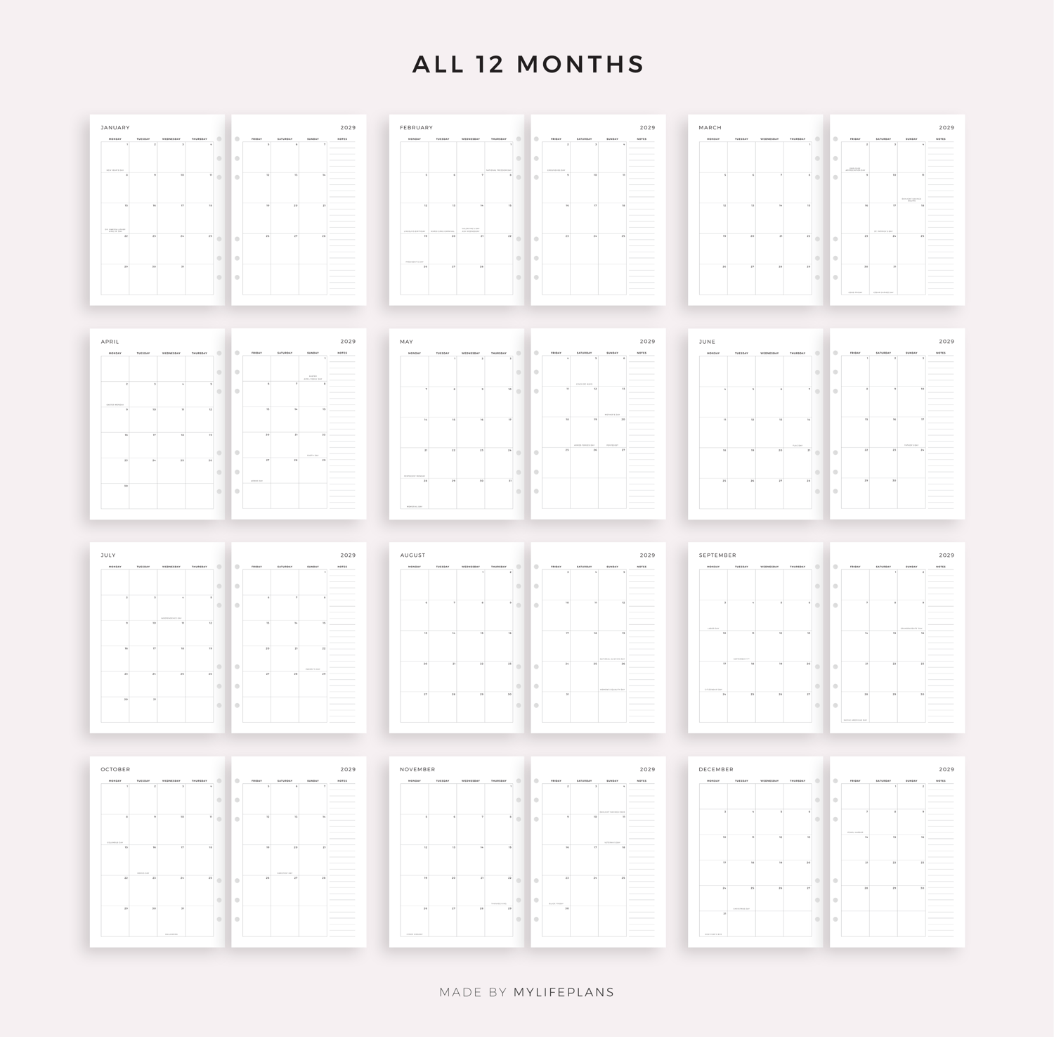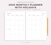 2029 Monthly Planner with Holidays, Printable & Fillable, A4/Letter Size