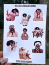 This 9-piece sticker sheet is a celebration of self-care, beauty, and Black joy. Thoughtfully illustrated with cozy, confident Black women unwinding in spa robes, sipping tea and wine, and embracing their glow, these stickers make the perfect gift for anyone who values relaxation, wellness, and stylish stationery.