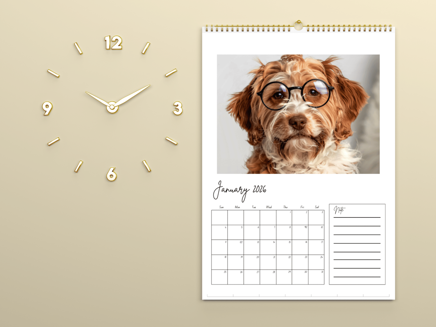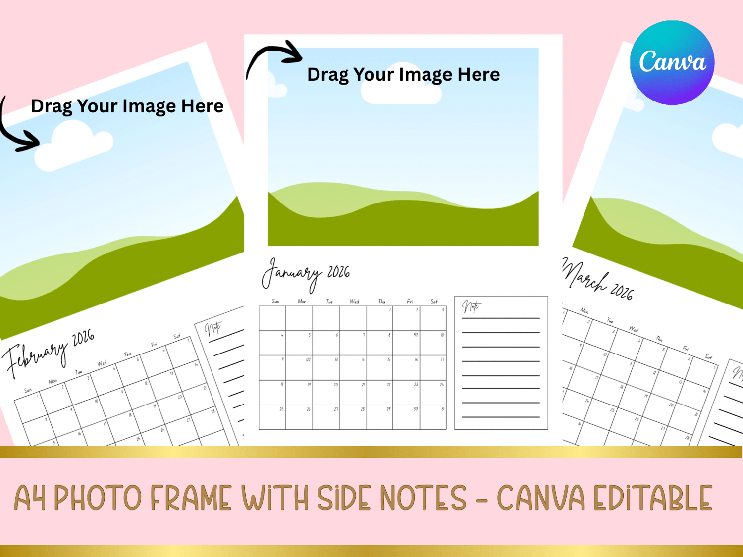 2026 A4 Photo Frame Calendar with Side Notes- Canva editable