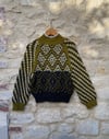 Knit top-down and in the round, using just 3 colours (light, medium and dark), once the neck (choose between a turtle or crew neck) has been knitted you will divide the front and back yokes, and left and right sleeves and then make gradual increases to shape the shoulders as you follow from the colourwork Charts. The body and sleeves are then separated at the underarms and knitted separately. Keep the body in a dark contrasting colour for a dramatic and flattering look, or play around with the colour order for a completely different look.
