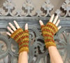 This is a pattern for a pair of mitts. Both are worked the same, from the cuff up and in the round using the Fair-Isle knitting technique. Optional embroidery details over the lower motif of the mitts and crocheted cuff may be added (instructions included).