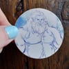 Round Vinyl Sticker of the Yeti character art for the Yeti stories by Lilith Leana.