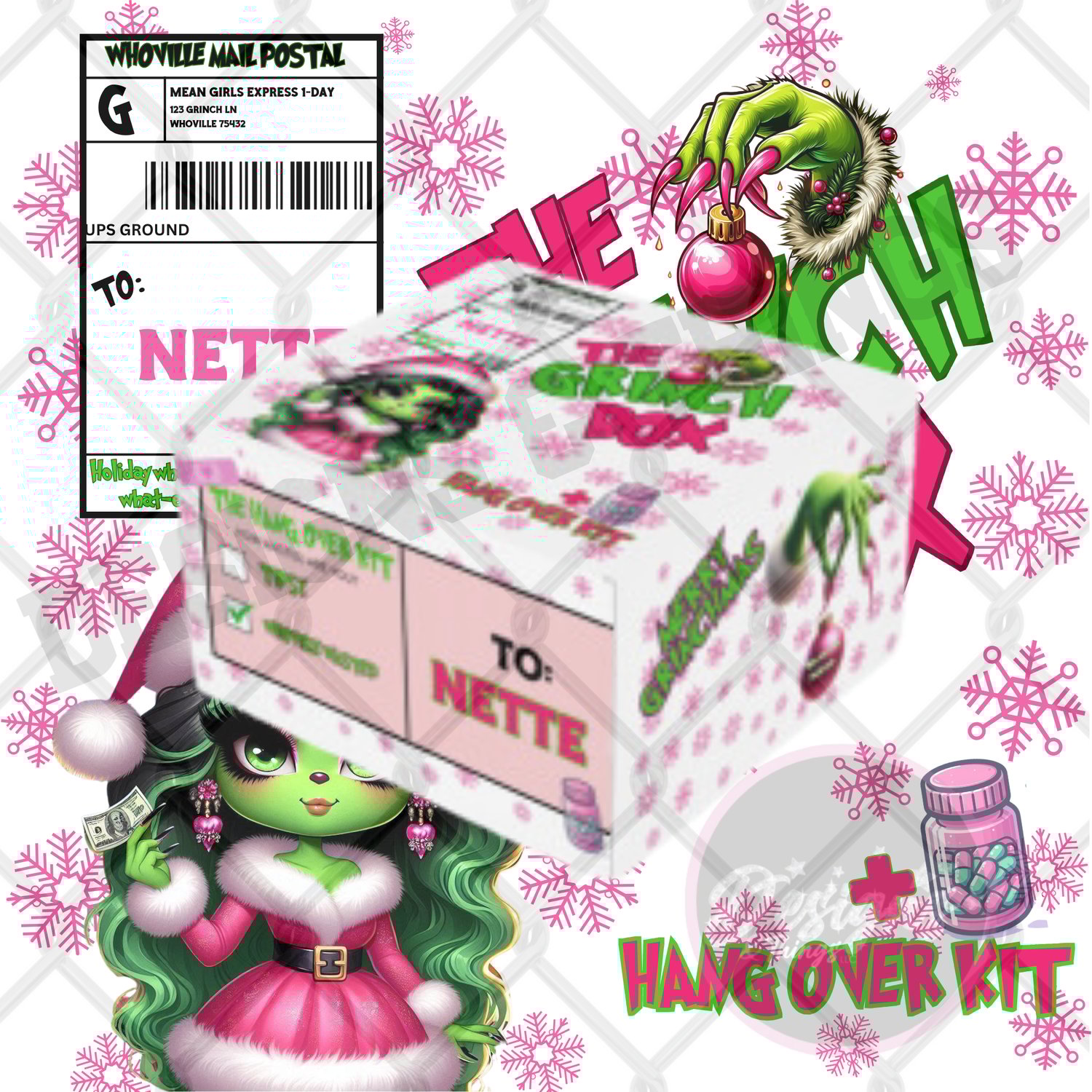 PINK GIRL SNOWFLAKE GRINCH HANGOVER TEMPLATE
