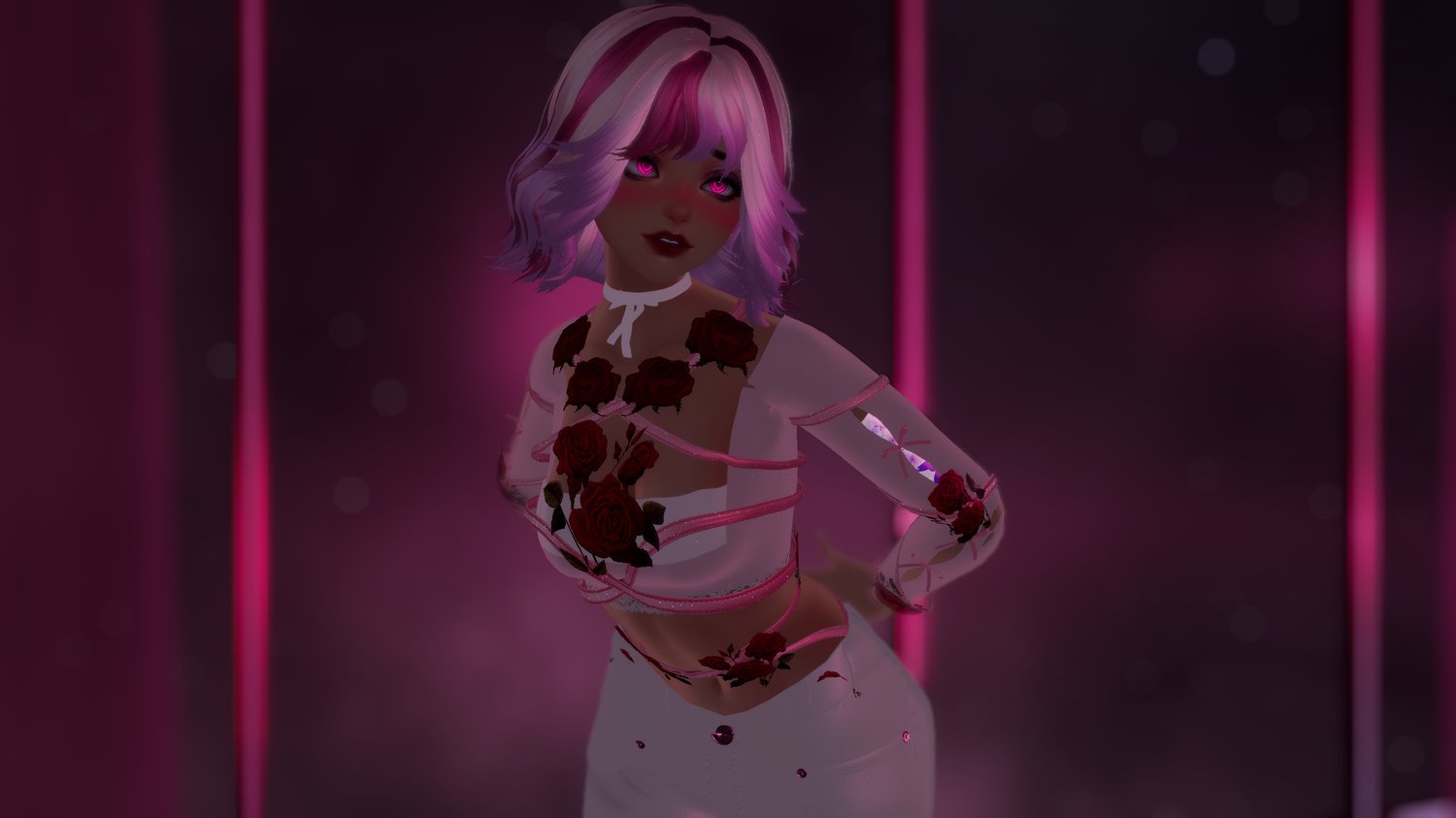 Body Base - Zinpia RP Female Base , Head - Amelia Head by Sivka, PC and Quest Icons, Long Hair - Yua’s Hair by Saikura , Short Hair - Short Wavy Bob by Sivka , Hair Texture -“Hair Texture Pack” Free by CicieaaaVR, White Flowy Outfit - Bohemian Filagrees Set by Cringy, Jeans - Jean Pants by Rxse, Arm Bone - Boones by Boo, Sakura Flower - Sakura Flower by Kannabee, Flower Harness - Flower Rose Harness by Aika, Long Sleeved Top - Ribbon Sleeve Milkmaid Top by Coyuette, Flower Type 1 - More Flower by Sena, Face Blood - Blood Decals for Amelia Head by Sivka, Body Blood Texture - Sangre Blood Texture by Lunna K, Knife - Free Flower Dagger by Haka, Second Heels - Domina Heels by Bobster, Tie Up Heels - Natalia Heels by Olympus