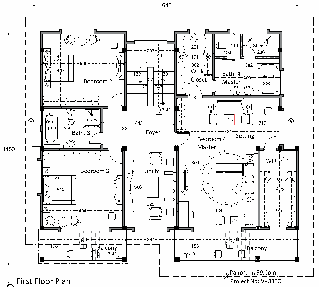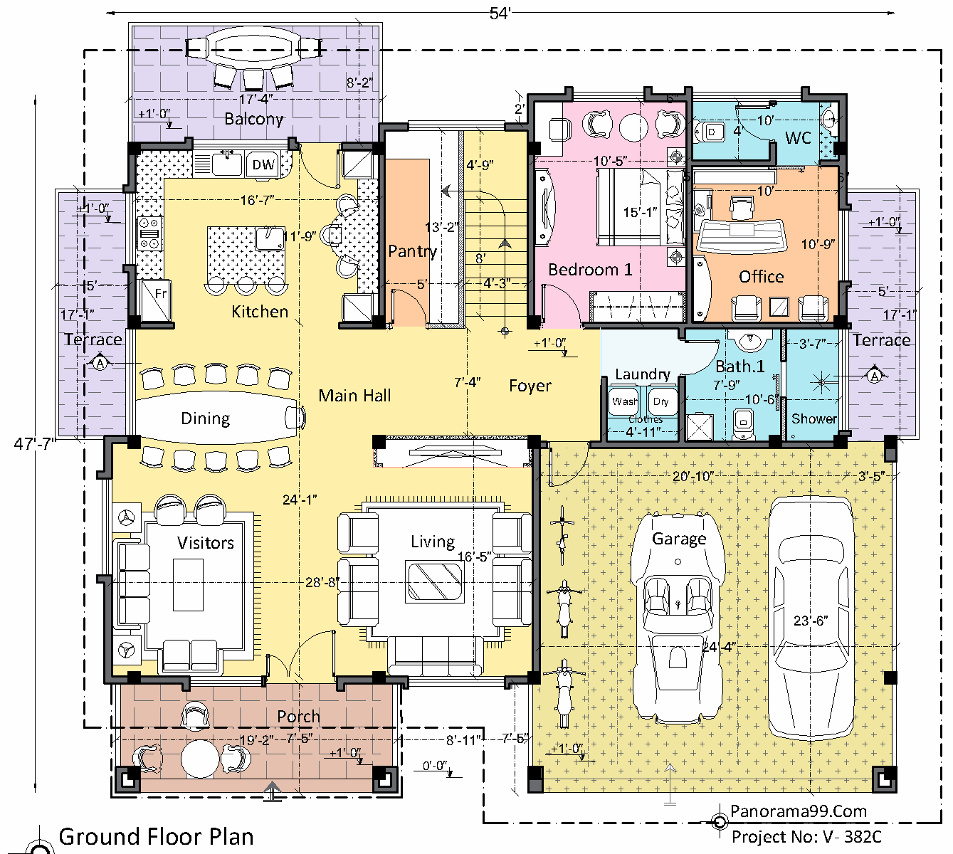 V-382-C| 5 Bedroom Two-Floor House Layout, with 3 Living area and 2 car garage