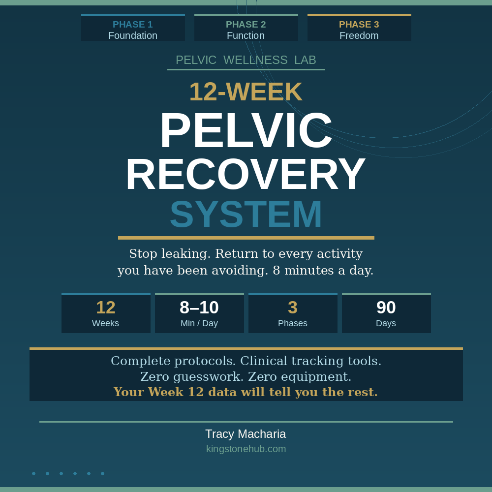 By Week 12, you will complete a graduation assessment comparing six specific metrics to your Week 1 data. Leak frequency. Urgency episodes. Night wakes. Activity limitations. Knack catch rate. Confidence rating. The numbers will tell you exactly what changed and by how much.