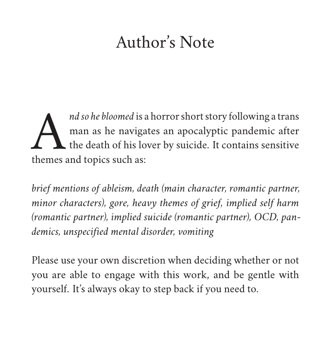 and so he bloomed is a 5k horror short story.