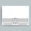 Representación minimalista del Banco de España, destacando su fachada neoclásica. Líneas limpias capturan detalles arquitectónicos, enfatizando simetría y elegancia en una composición equilibrada.